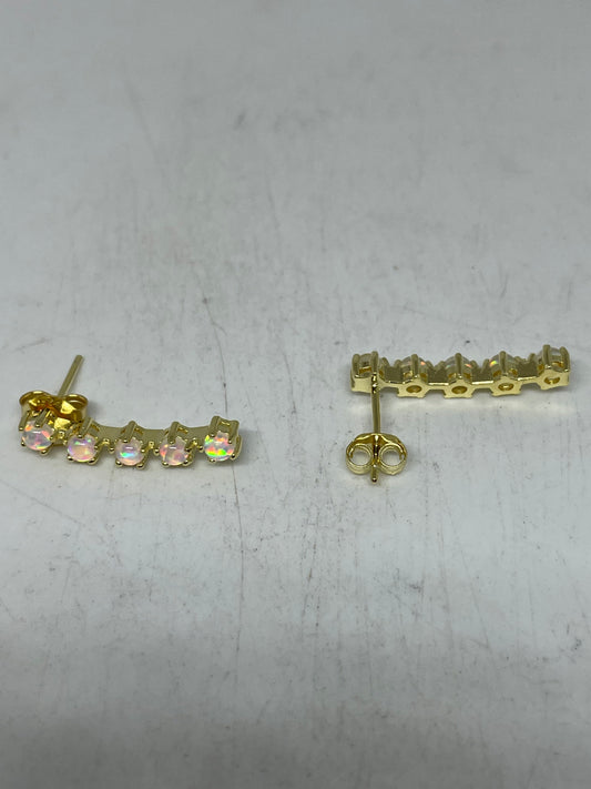 Vintage White Opal Earrings Golden 925 Sterling Silver Stud Button