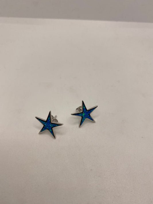 Vintage Blue Opal Earrings 925 Sterling Silver Stud Button