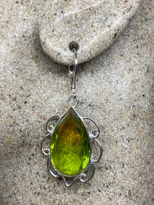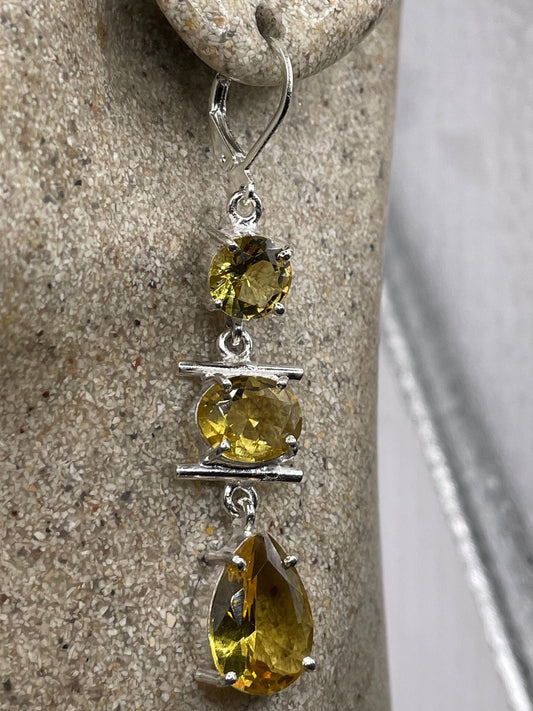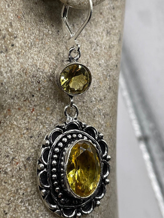 Antique Vintage Glass Citrine Silver Dangle Earrings