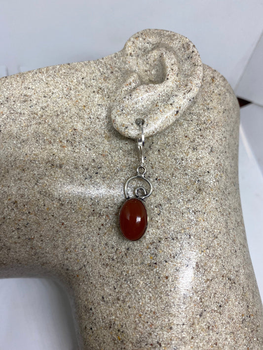 Carnilian Charm Gemstone Sterling Silver Dangle Earrings