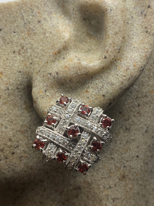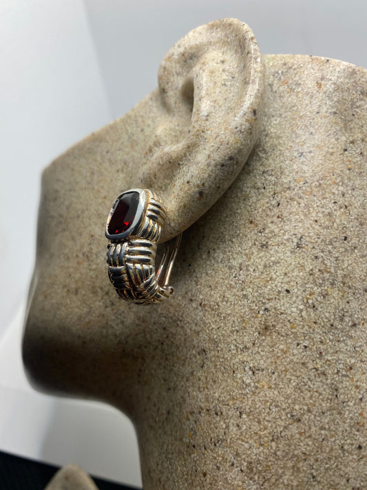 Vintage 925 Sterling Silver Bohemian Garnet Earrings