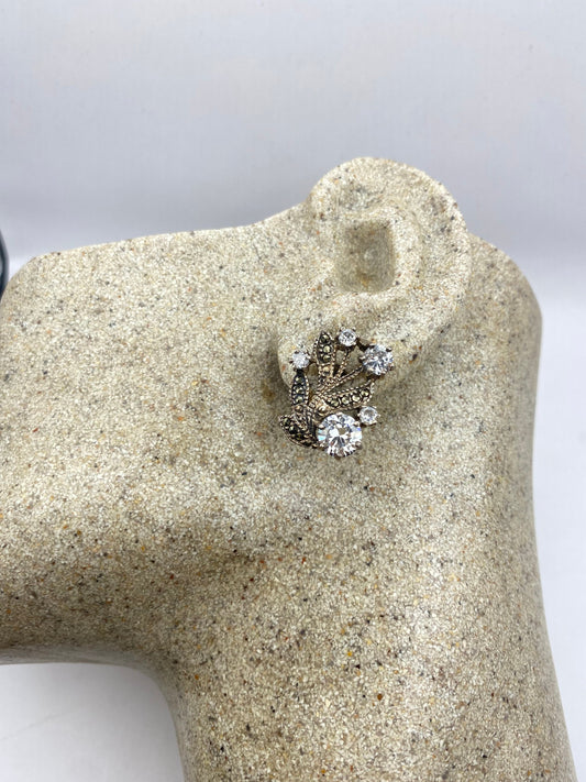 Vintage Marcasite 925 Sterling Silver Crystal Earrings