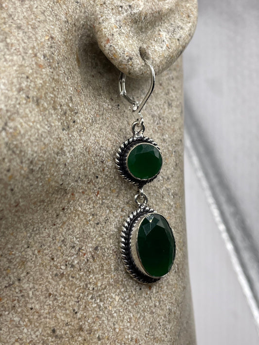 Antique Vintage Green Glass Silver Dangle Earrings