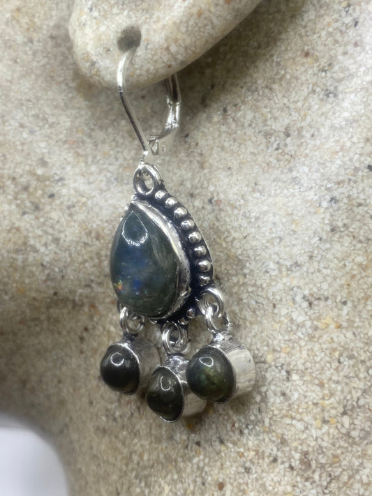 Vintage Labradorite Silver Dangle Earrings