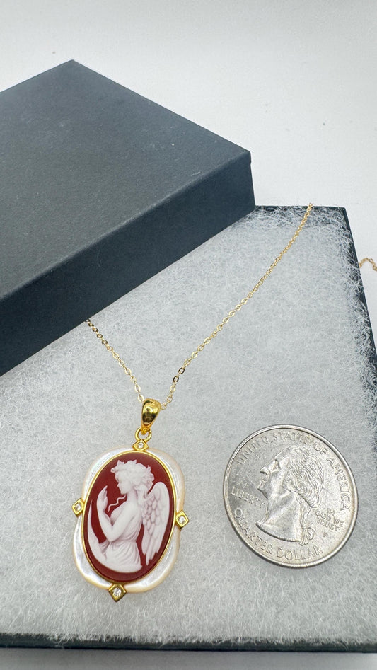 Vintage Red Onyx Gaurdian Angel Cameo Golden 925 Sterling silver Necklace Choker