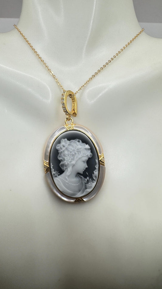 Vintage Onyx Cameo Golden 925 Sterling silver Necklace Choker