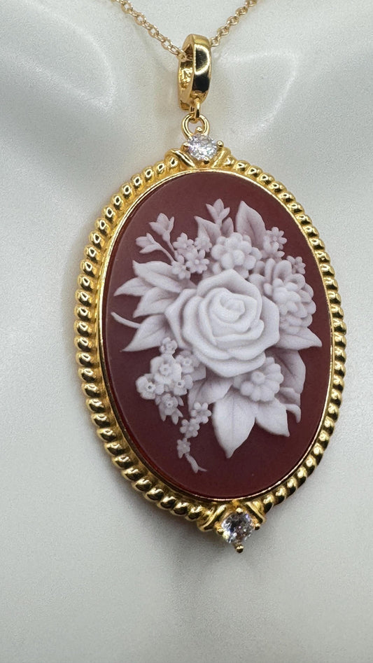 Vintage Rose Flower Cameo Yellow Golden 925 Sterling Silver Necklace Choker