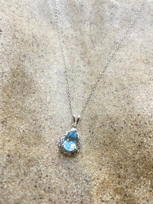 Vintage Blue Topaz Choker 925 Sterling Silver Pendant Necklace