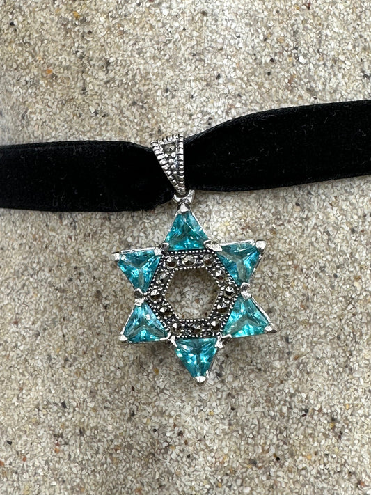 Vintage Marcasite Star of David Choker 925 Sterling Silver Pendant Necklace
