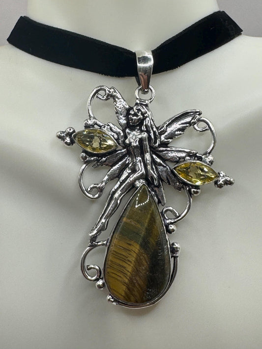 Vintage Sprite fairy Silver Genuine Labradorite Gemstone Necklace choker