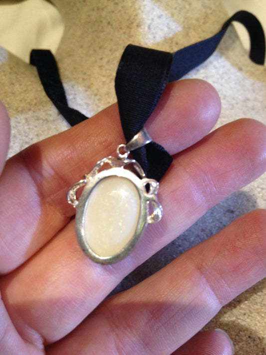 Vintage White Opal Choker 925 Sterling Silver Pendant Necklace