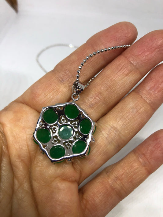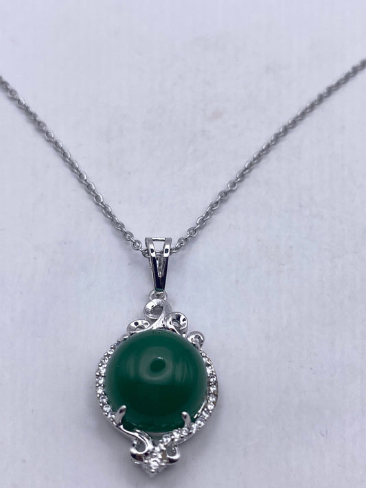 Vintage Green Jade Choker Silver Finish Necklace Pendant
