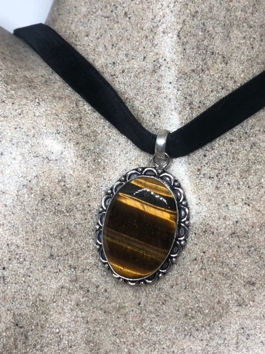 Vintage Handmade Silver tigers eye Pendant Necklace