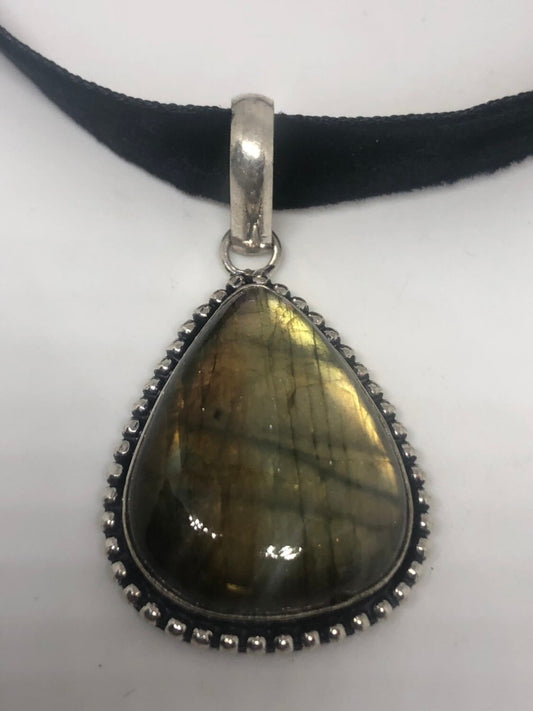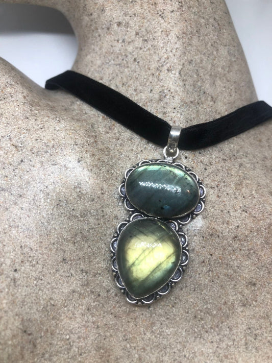 Vintage Silver Genuine Labradorite Gemstone Necklace.