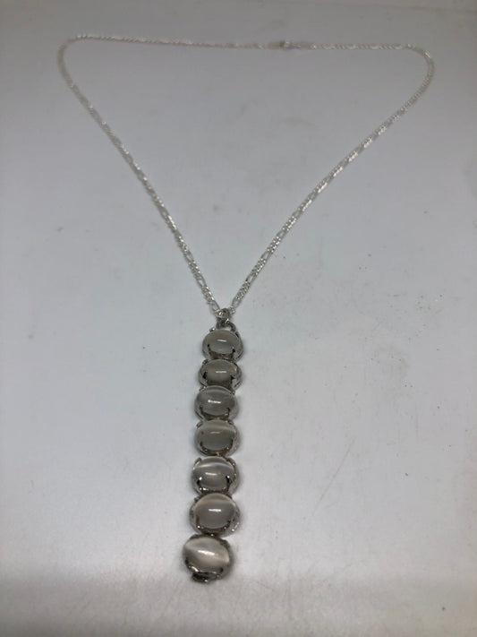 Vintage Rhodium 925 Sterling Silver Moonstone Pendant Necklace Choker