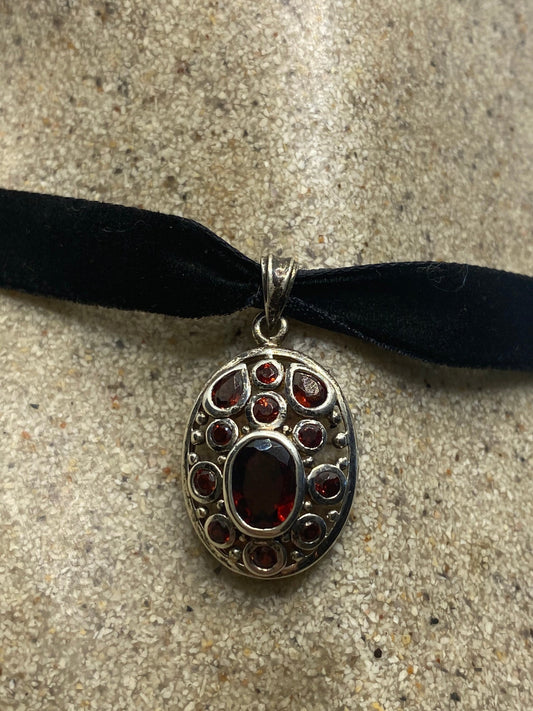 Vintage Heart Choker 925 Sterling Silver Garnet Pendant Necklace