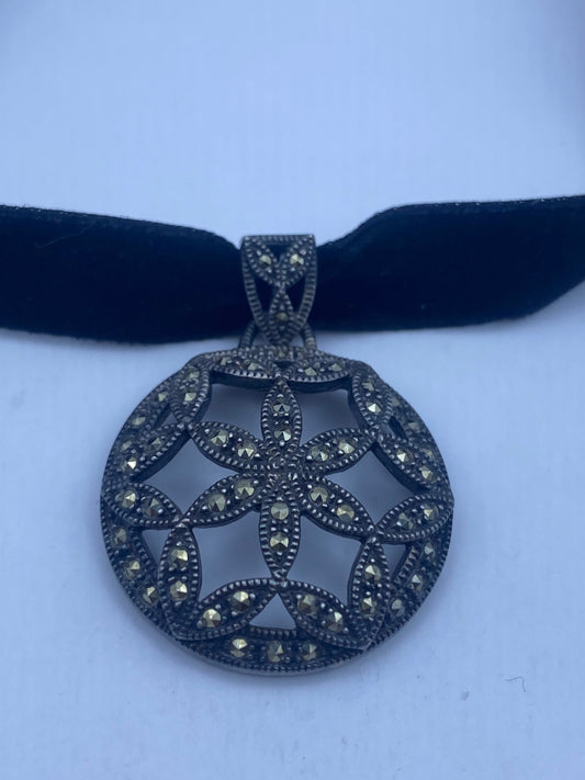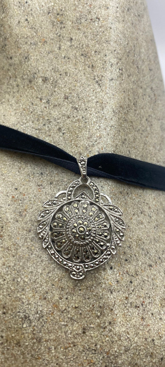 Vintage Marcasite 925 Sterling Silver Pendant Necklace