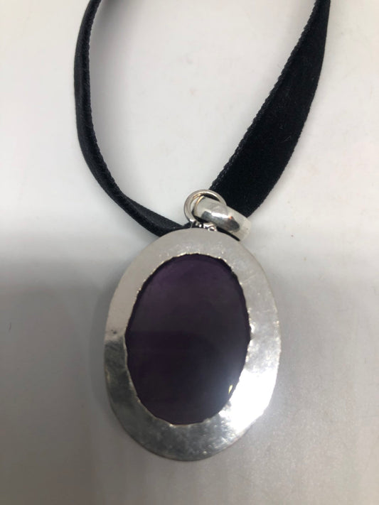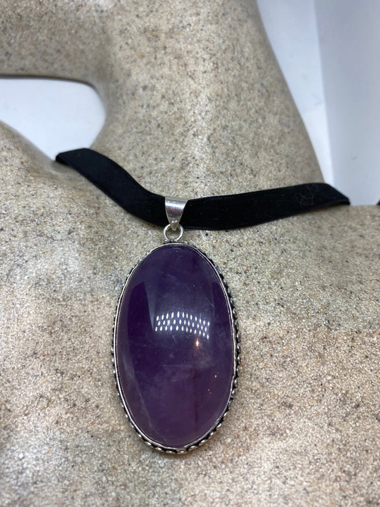 Vintage Amethyst Choker Necklace Bohemian Cabochon Purple Genuine