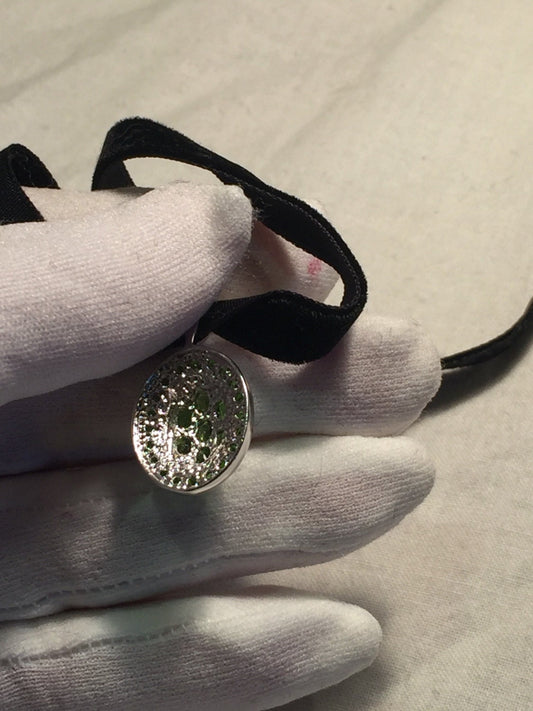 Vintage Green Choker Deco Chrome Diopside 925 Sterling Silver Pendant Necklace