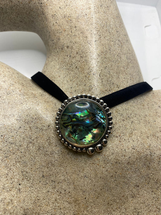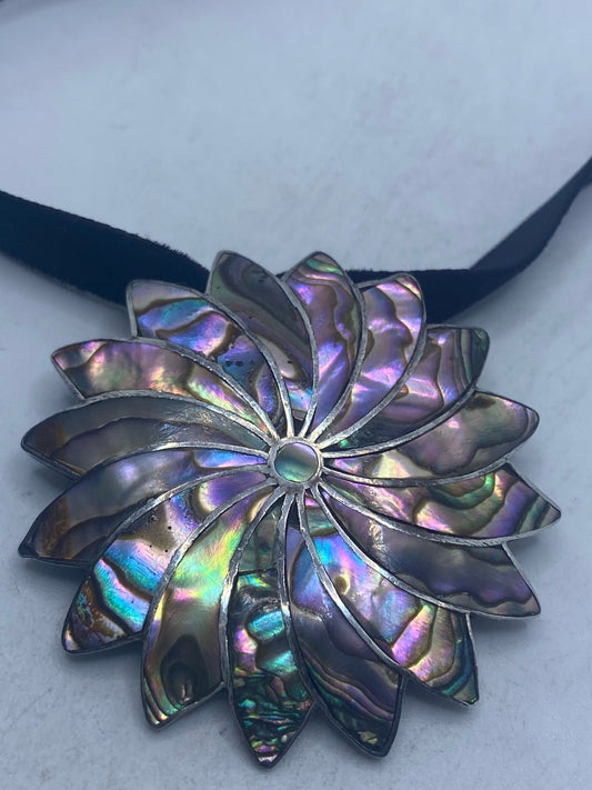 Vintage Abalone Choker Antique 925 Sterling Silver Pin Pendant Necklace