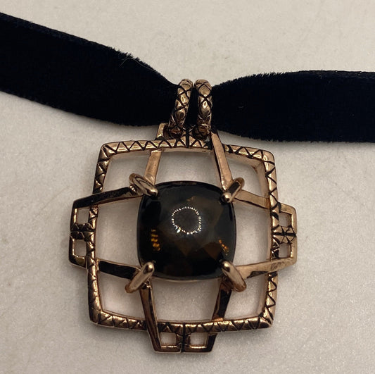 Vintage Smoky Topaz Rose Gold 925 Sterling Silver Necklace Choker