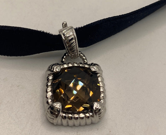 Vintage Smoky Topaz 925 Sterling Silver Necklace Choker