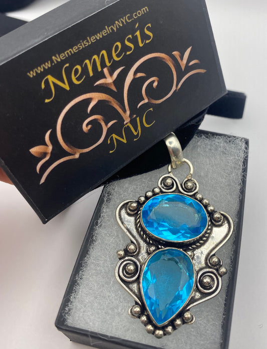Vintage Blue Aqua Glass Choker Silver Finished Necklace