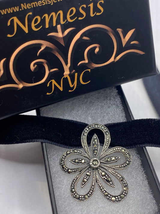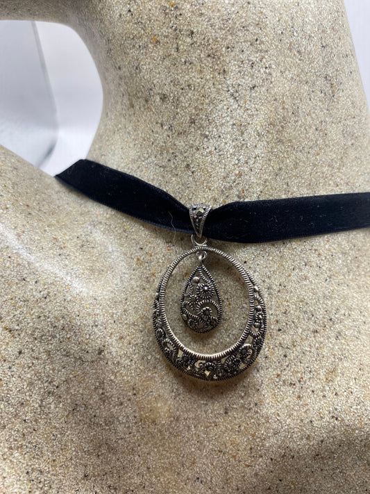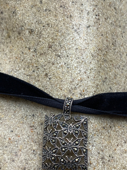 Vintage Marcasite 925 Sterling Silver Choker Pendant Necklace