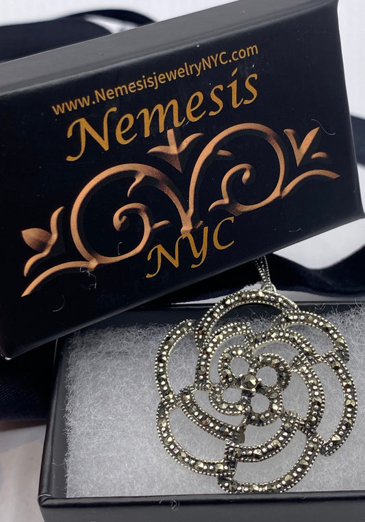 Vintage Marcasite Rose Choker 925 Sterling Silver Pendant Necklace