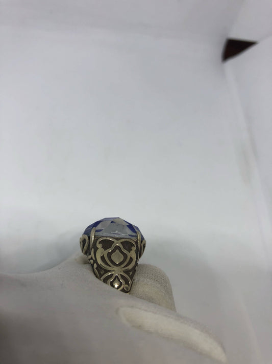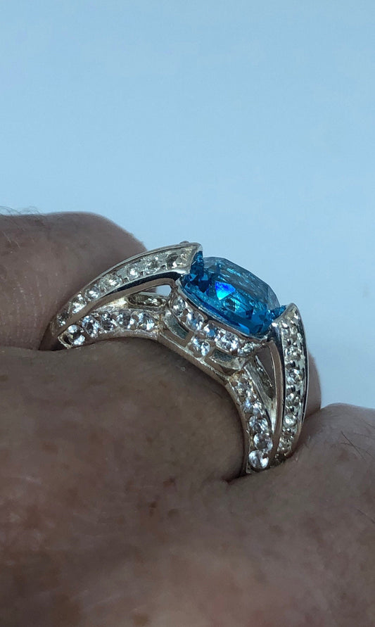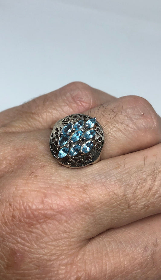 Vintage Genuine Blue Topaz 925 Sterling Silver Ring Size 7.5