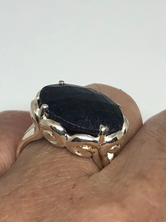 Vintage Blue Sapphire 925 Sterling Silver Gothic Ring Size 9