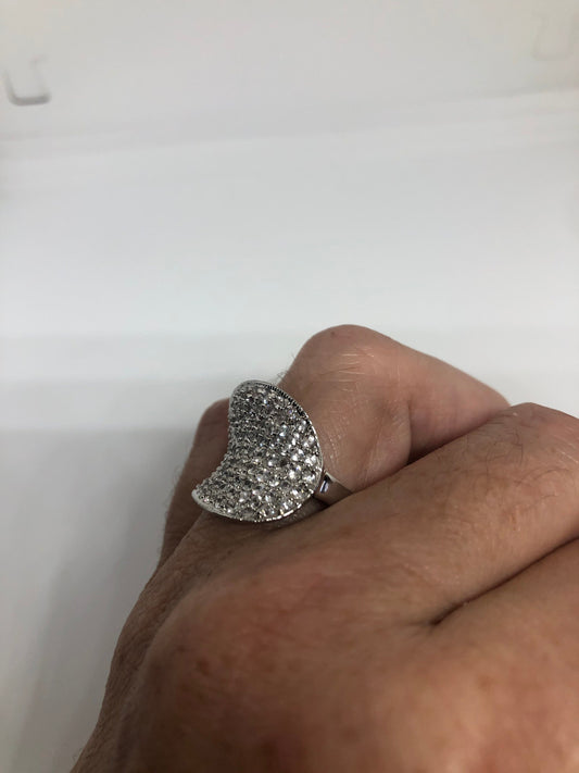 Vintage Clear White Sapphire 925 Sterling Silver Cocktail Ring