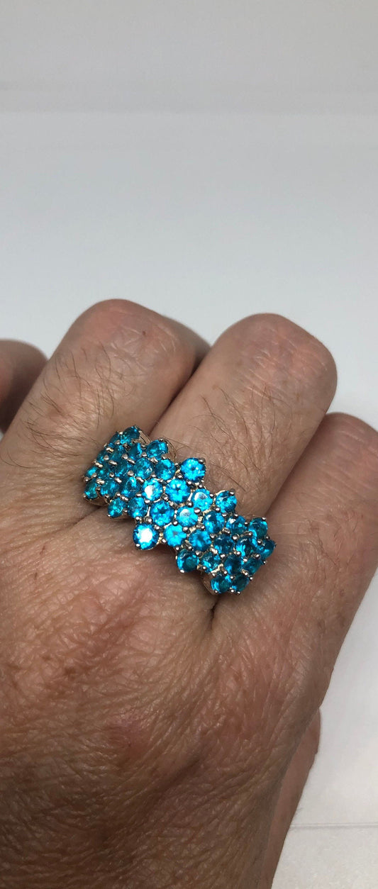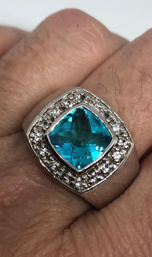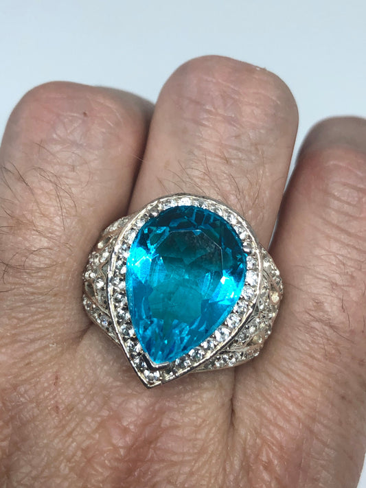 Vintage Genuine Blue Topaz 925 Sterling Silver Ring Size 9