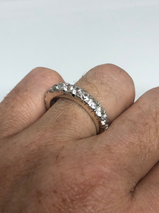 Vintage Clear White Sapphire 925 Sterling Silver Wedding band Ring