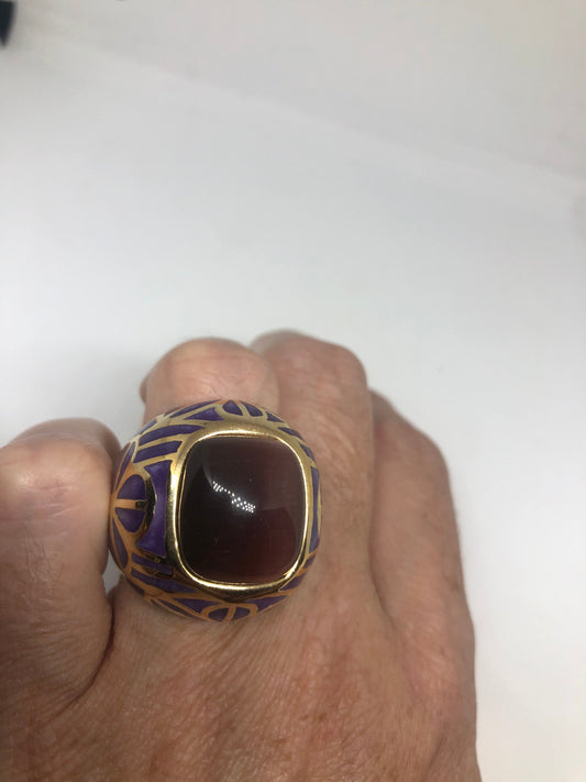 Vintage Purple Cats Eye Art Glass Enamel Ring