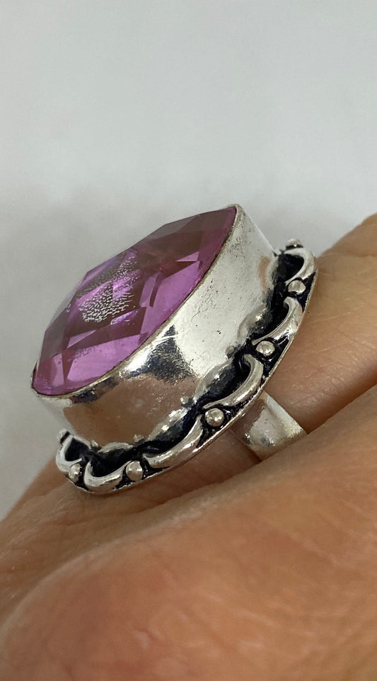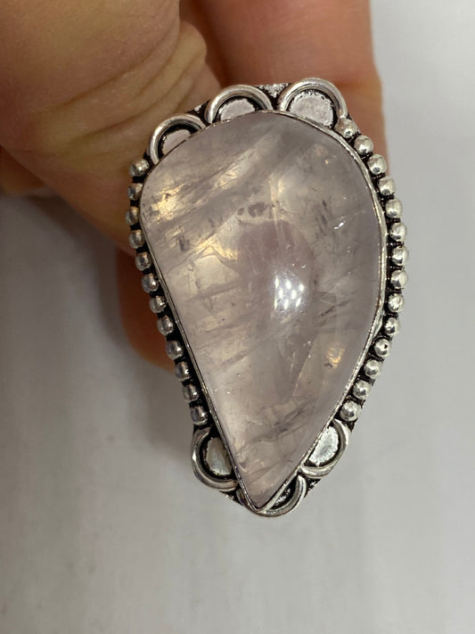 Vintage Rose Quartz Silver Cocktail Ring Size 8