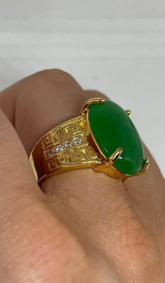 Vintage Lucky Green Nephrite Jade Golden Ring