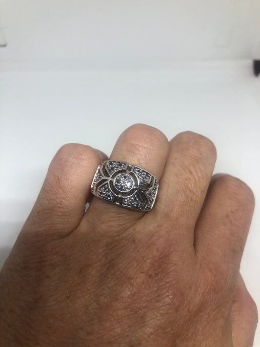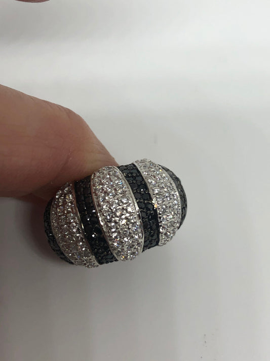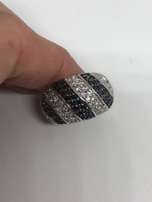 Vintage Clear White and Black Sapphire 925 Sterling Silver Cocktail Ring Size 6.5