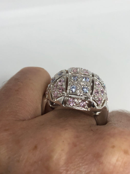 Vintage Clear and Pink CZ 925 Sterling Silver Cocktail Ring Size 8