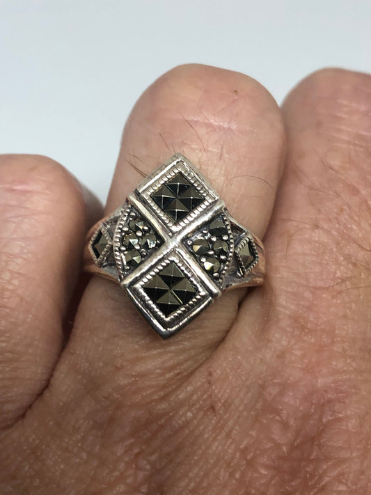 Vintage Swiss Marcasite 925 Sterling Silver Gothic Flower Ring Size 7
