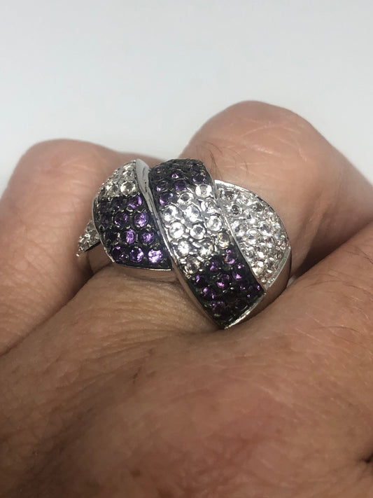Vintage Purple Amethyst Ring 925 Sterling Silver Gothic Size 7