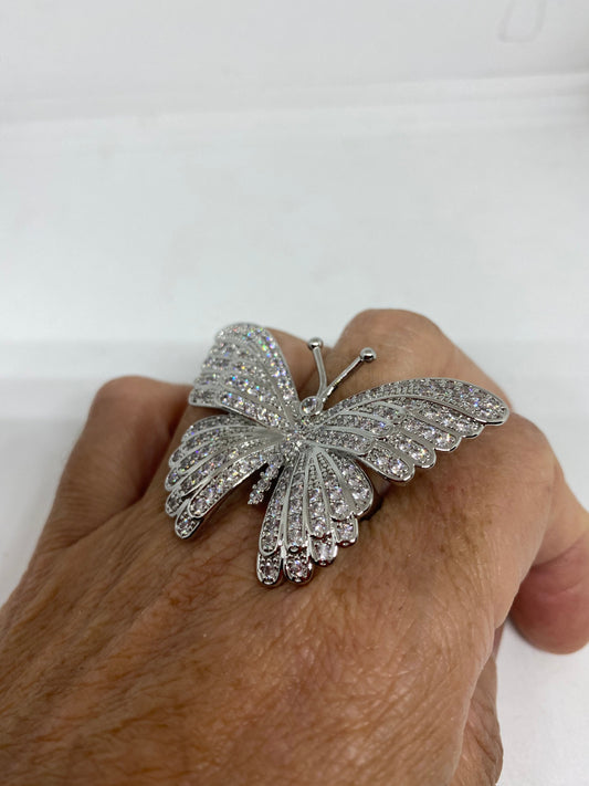 Vintage Butterfly Ring White Gold filled Deco Cocktail