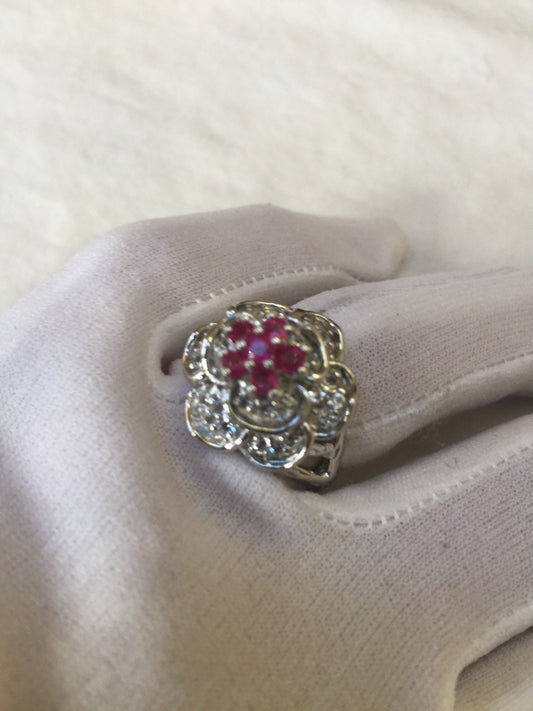 Vintage Handmade Pink Toumaline 925 Sterling Silver Gothic Flower Ring