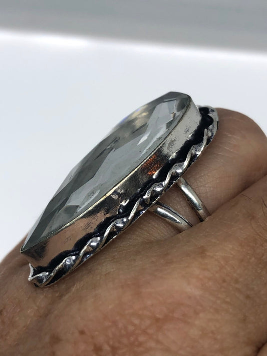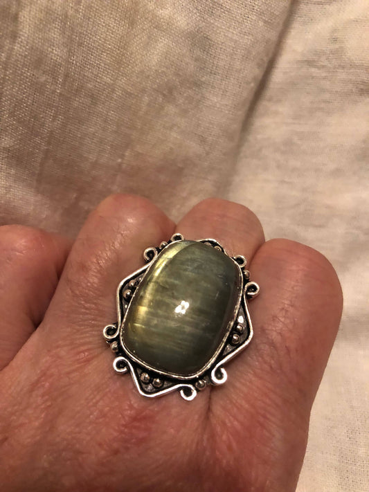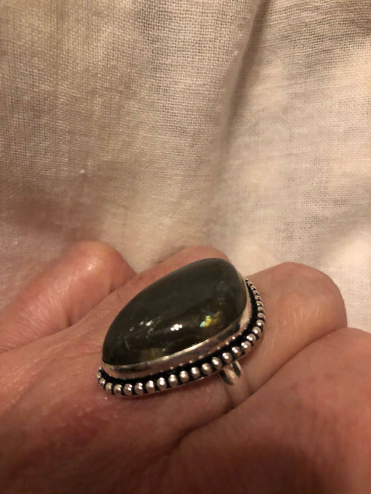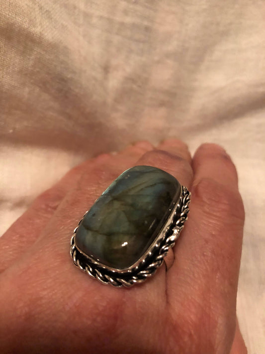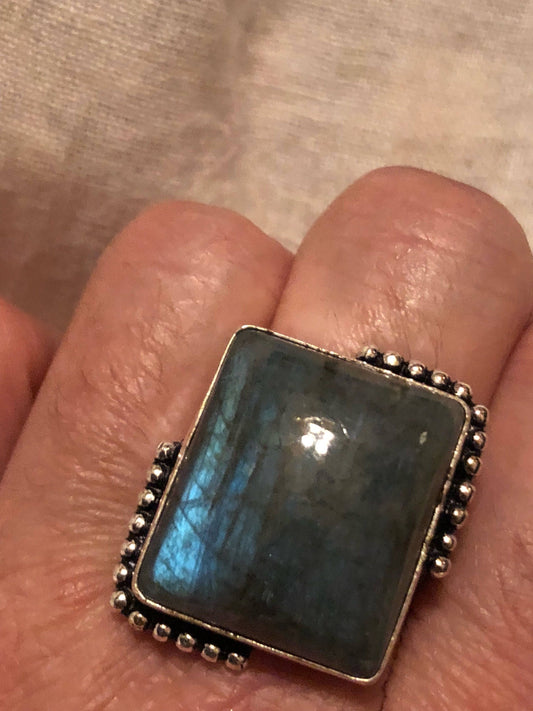 Vintage Large Blue Green Labradorite Stone Silver Ring