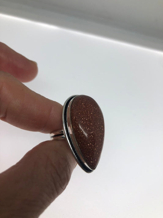 Vintage Handmade Gold Sandstone Setting Silver Ring