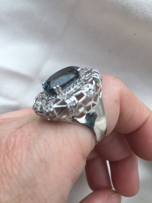 Vintage Genuine London Blue Topaz 925 Sterling Silver Ring
