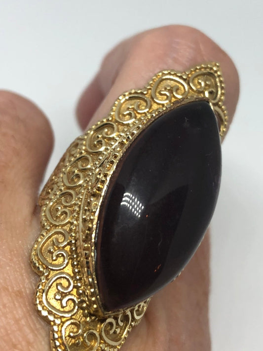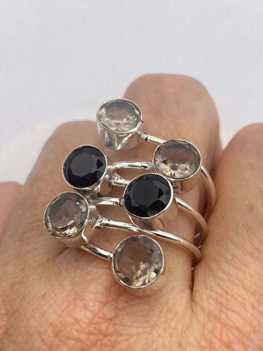 Vintage Black Onyx Smoky Topaz Silver Cocktail Ring