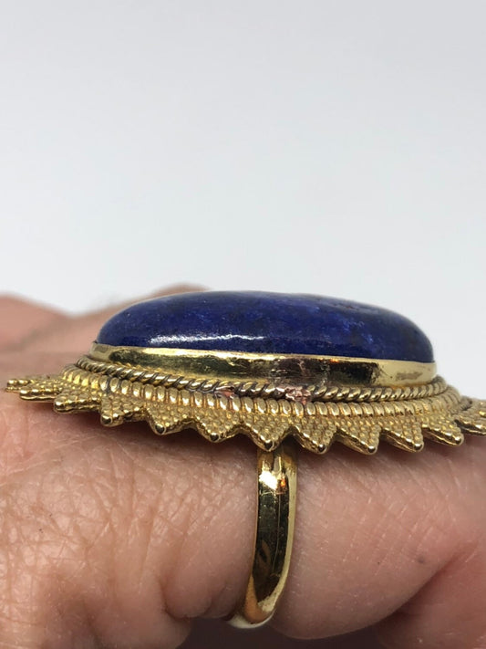 Vintage Large Lapis Lazuli Adjustable Bronze Ring