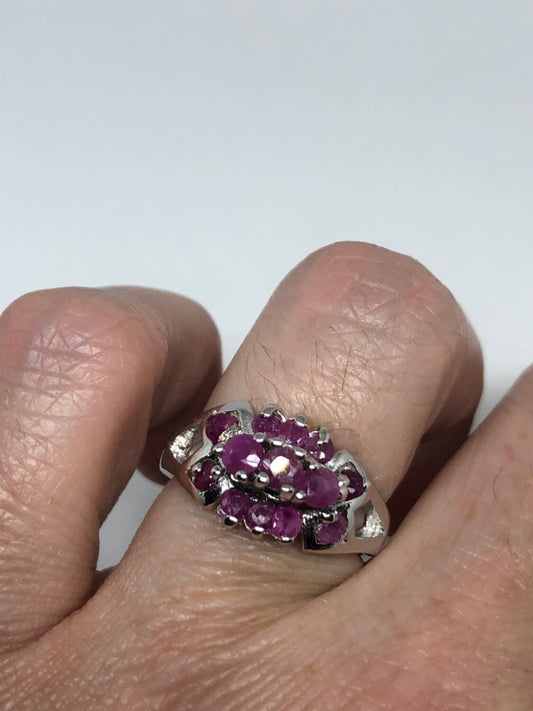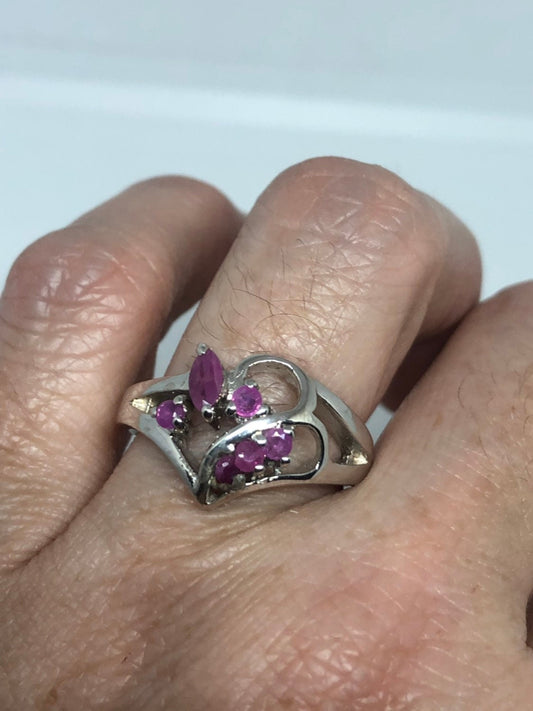 Vintage Genuine Pink Ruby 925 Sterling Silver Ring
