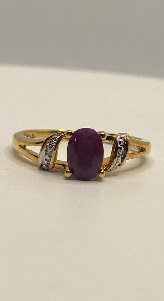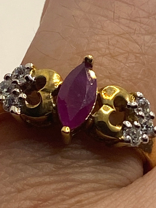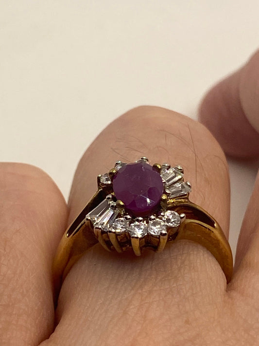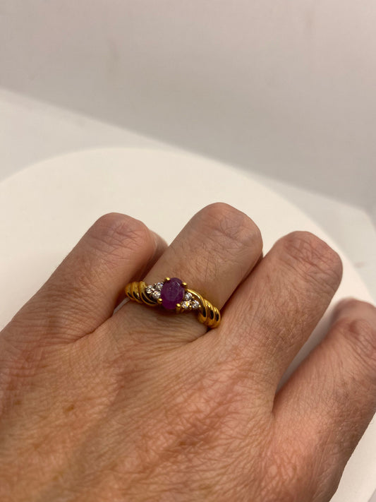 Vintage Pink Ruby Golden 925 Sterling Silver Band Ring